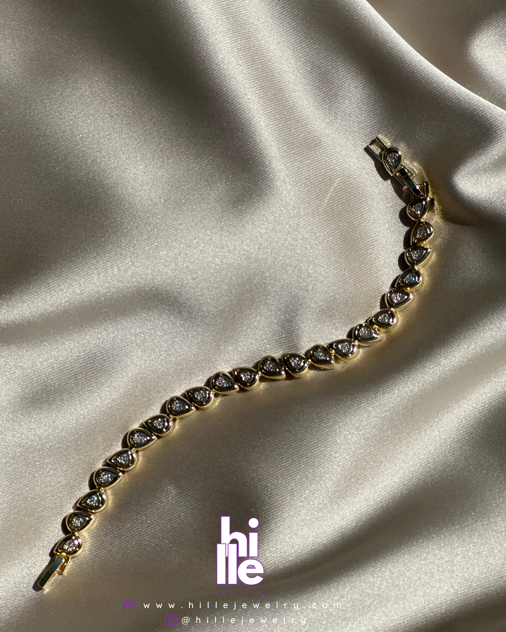 Hille Jewelry tasarımı bu zarif altın bileklik, kalp formundaki detaylarıyla romantik bir şıklık sunuyor. Parlak dokusuyla her kombine zarafet katacak bu özel parça, sevdiklerinize hediye etmek ya da kendinizi şımartmak için ideal.